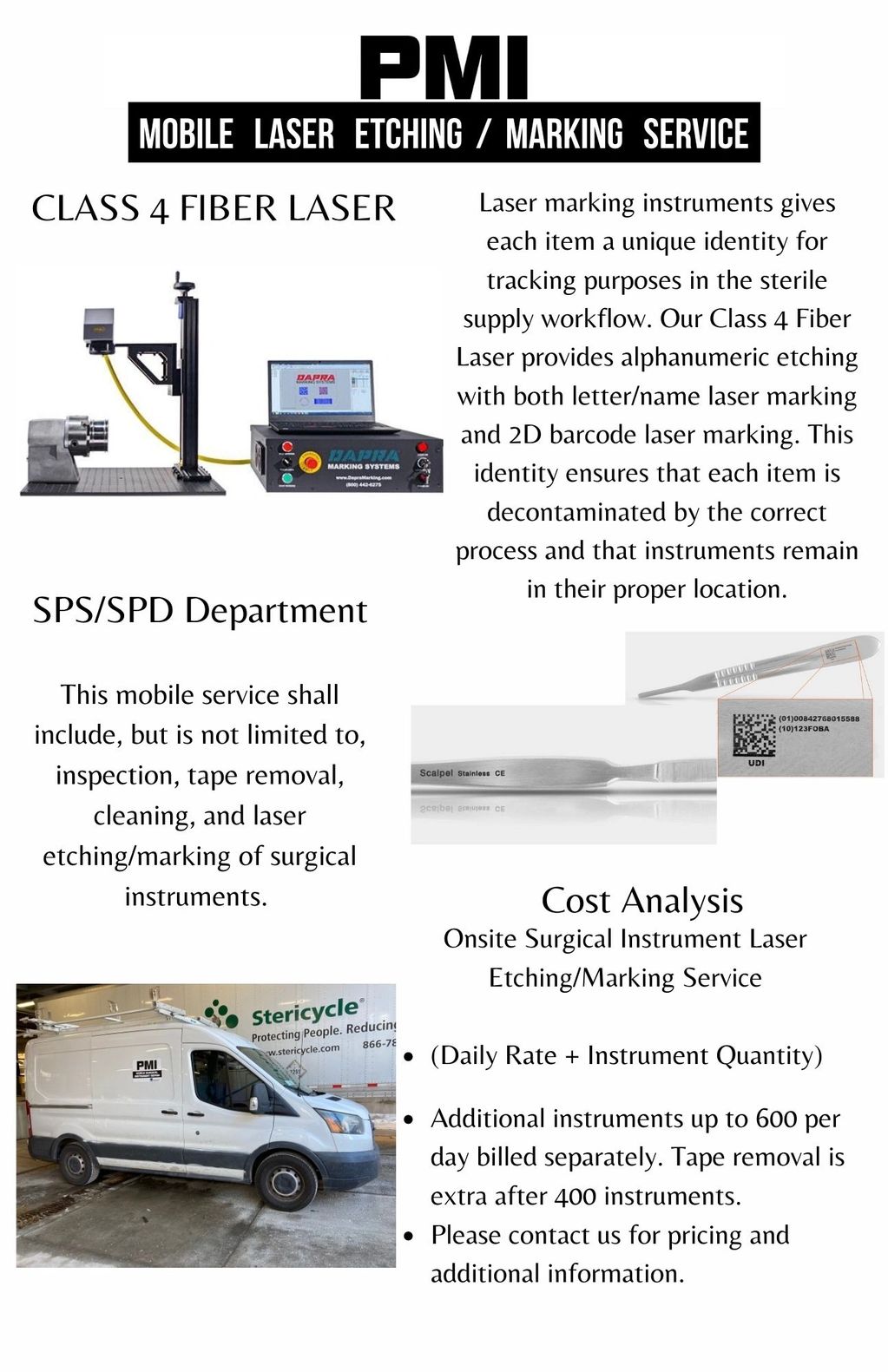 Laser marking instruments gives each item a unique identity for tracking and tracing purposes in the sterile supply workflow. Our Class 4 Fiber Laser provides alphanumeric etching with both letter/name laser marking and 2D barcode laser marking. This identity ensures that each item is decontaminated by the correct process and that instruments remain in their proper location.